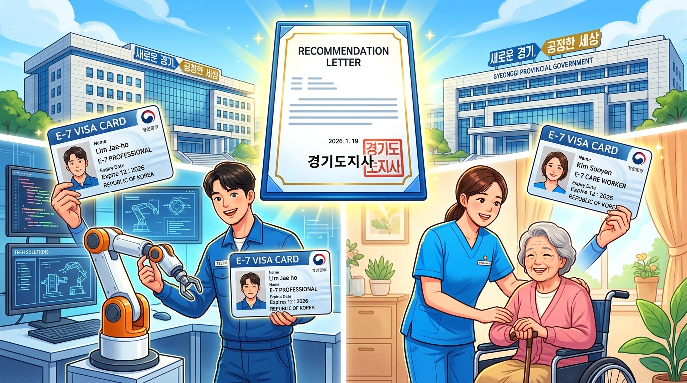 경기도 E-7 비자 시범사업 실시-경기도가 도지사 추천을 통해 E-7(특정활동) 비자 신청을 지원하는 광역형 비자 시범사업을 추진합니다.